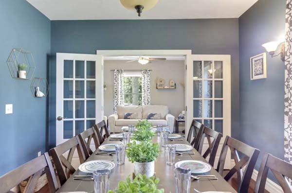 There’s space to gather, space to sit, and space to reset. A large dining area handles group meals and trail talk. Comfortable living areas give everyone a place to crash after a long day in the saddle. And with five bedrooms and nine beds, everyone gets a real place to sleep — not just a corner of the floor.